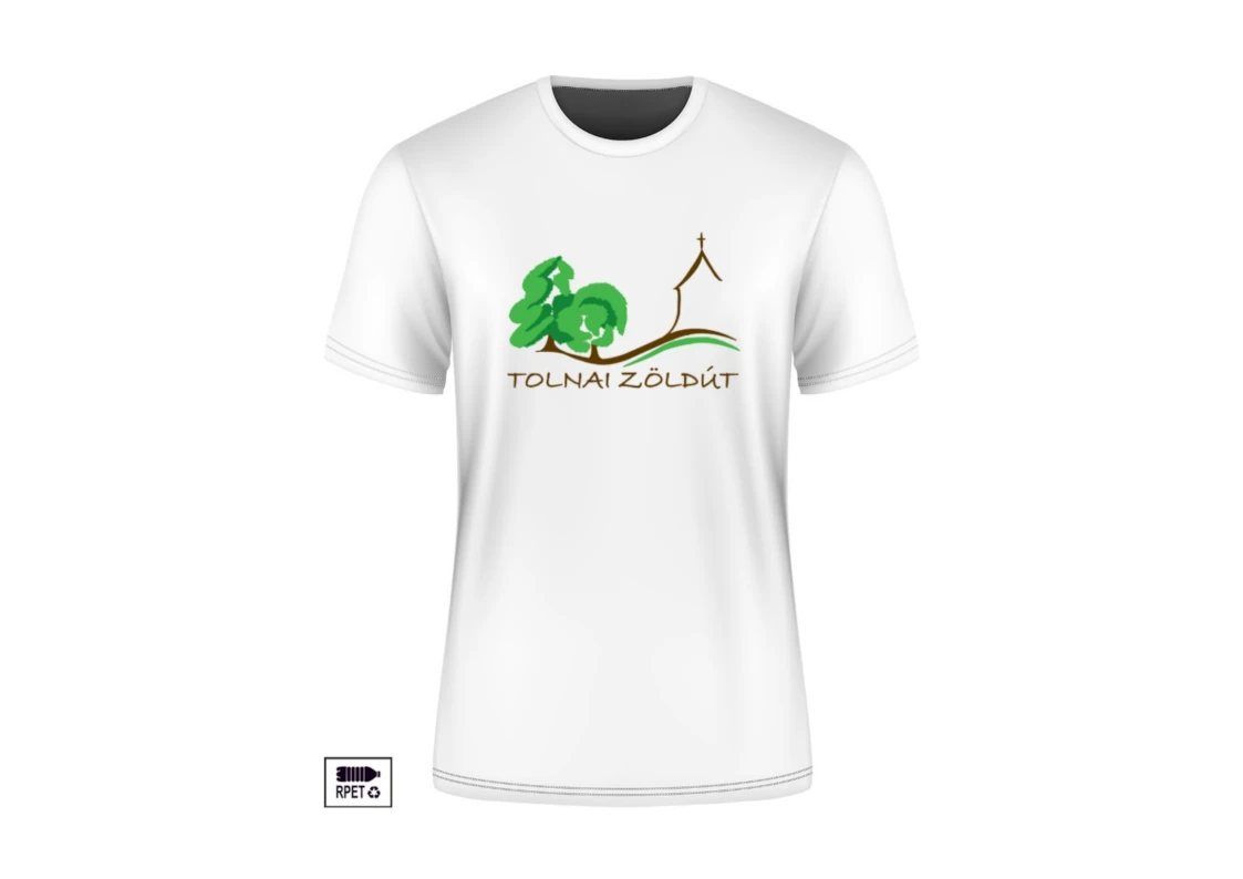 Technikai sportpóló (2200 Ft, légáteresztő, fehér, unisex, Tolnai Zöldút logóval)