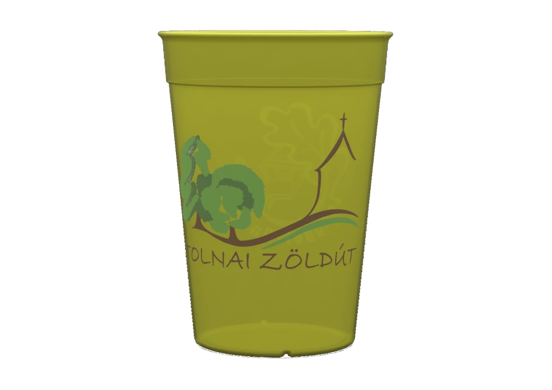 Újrapohár (500 Ft, pink/gold, műanyag, Tolnai Zöldút logóval)