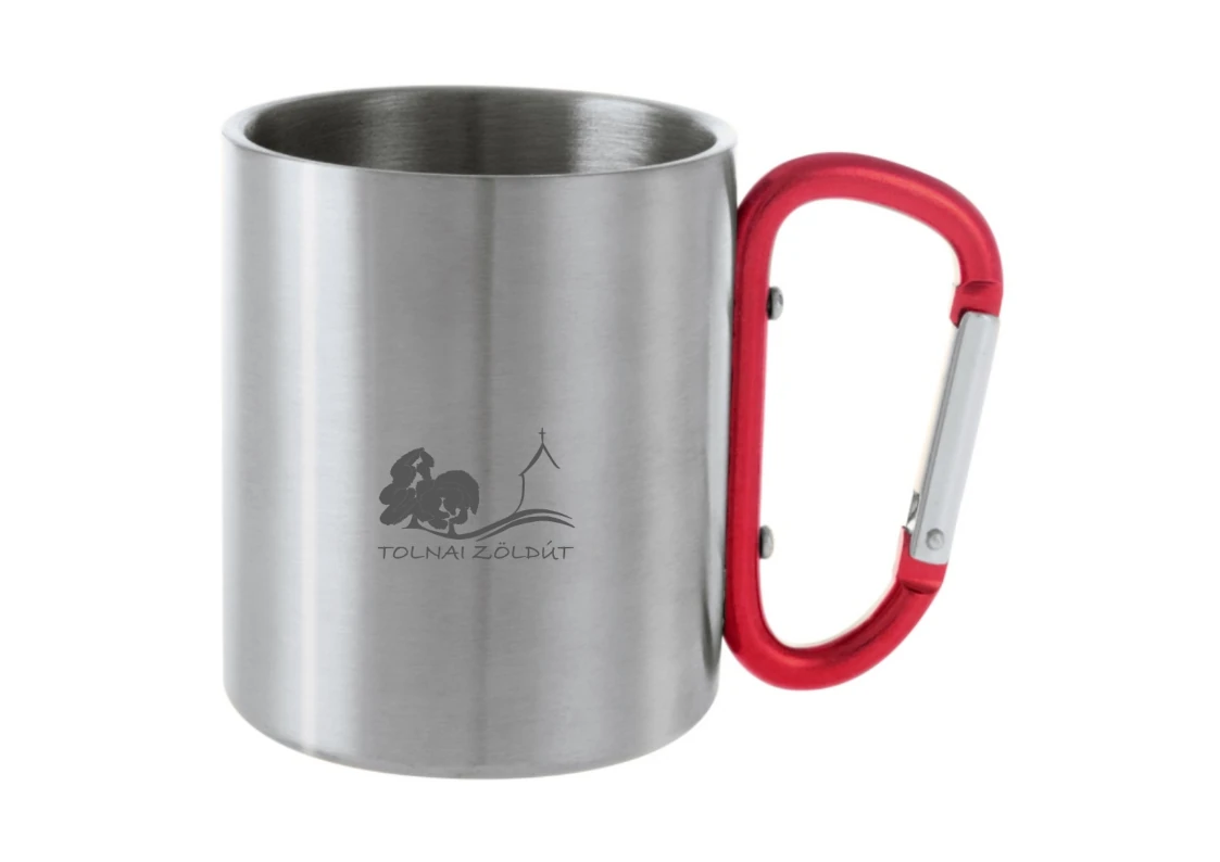 Bögre (1900 Ft, duplafalú, rozsdamentes acél, karabineres, Tolnai Zöldút logóval)