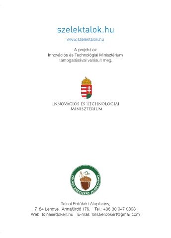 www.szelektalok.hu A projekt az Innovációs és Technológiai Minisztérium támogatásával valósult meg. Tolnai Erdőkért Alapítvány, 7184 Lengyel, Annafürdő 176. Tel.: +36 30 947 0898 Web: tolnaierdokert.hu E-mail: tolnaierdokert@gmail.com